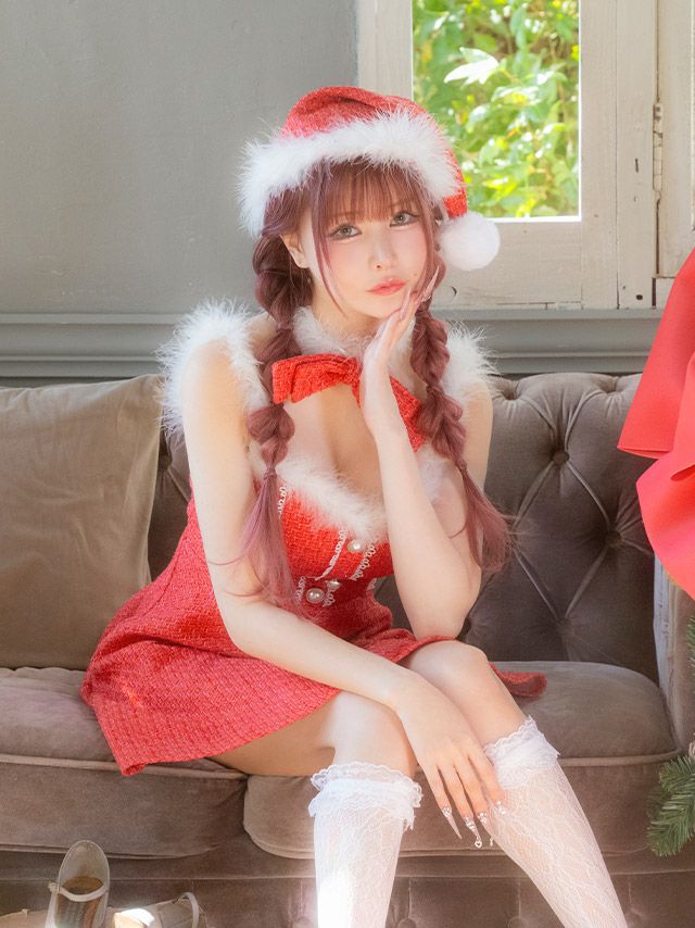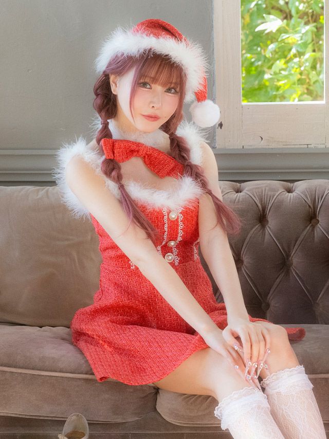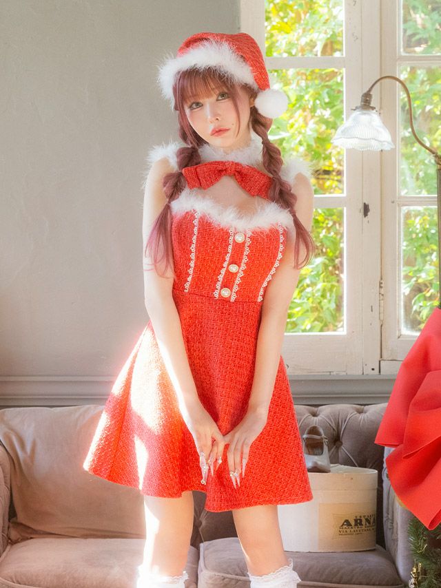 他の画像を見る ガーリーで映えるお顔周りにメイク♡ サンタコスプレ 3点set ツイード リボン レース フレアスカート ガーリードレス [ワンピース+チョーカー+帽子] ¥ 8,690 税込 お気に入りに追加