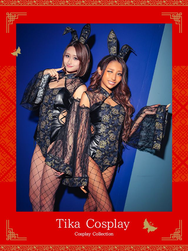 ハロウィンコスプレ ドラゴン刺繍レースセクシーレオタードペアチャイナバニーのイメージ画像1