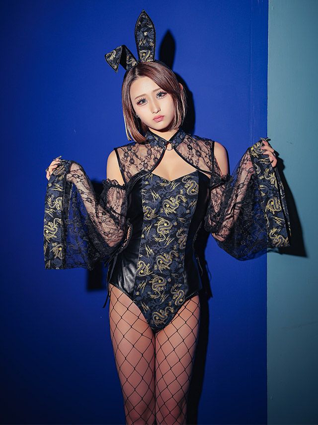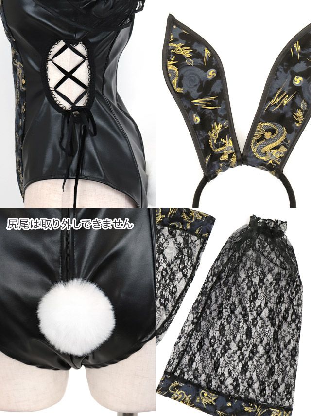 5. [コスプレ] イースター ドラゴン刺繍レースセクシーレオタードツインチャイナバニー [5点セット] (ジャケット/レオタード/カチューシャ/透明ストラップ/付け袖)
