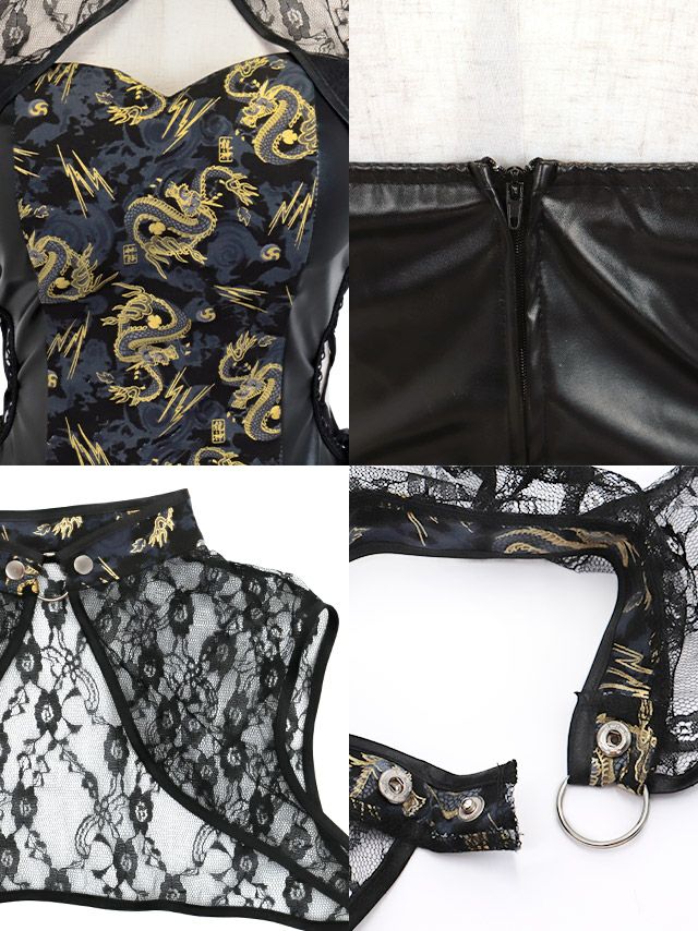 4. [コスプレ] イースター ドラゴン刺繍レースセクシーレオタードツインチャイナバニー [5点セット] (ジャケット/レオタード/カチューシャ/透明ストラップ/付け袖)