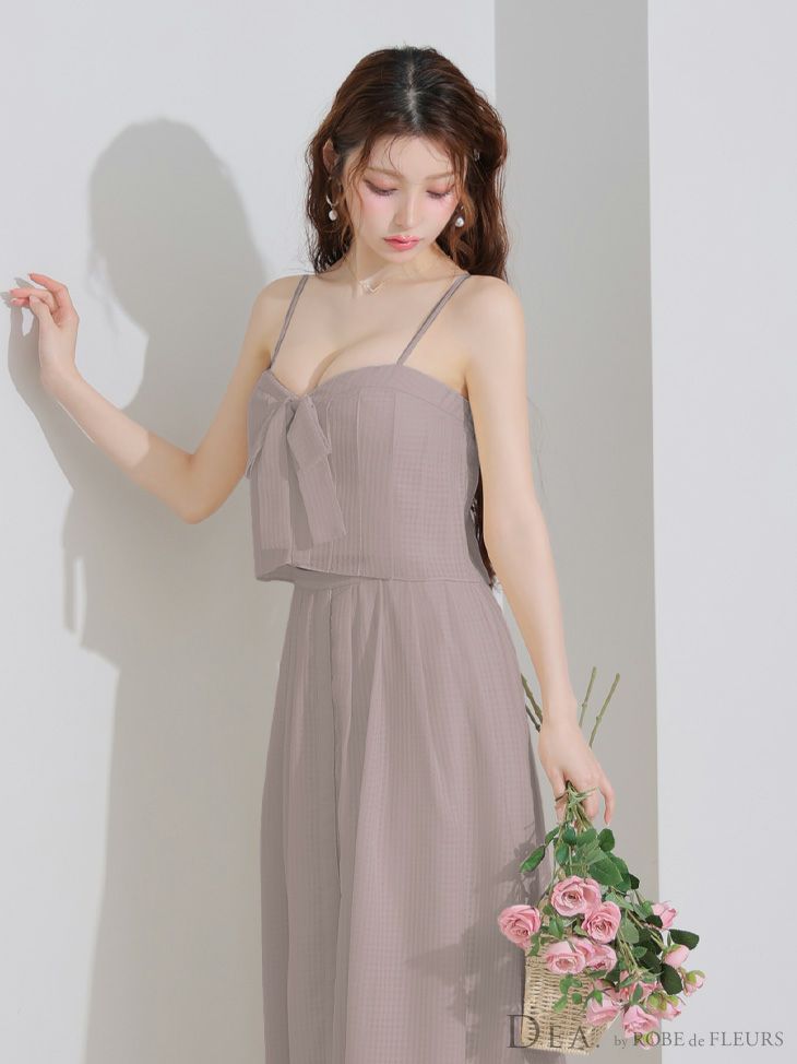 洗練されたフェミニン女性に♡ [DEA.byROBEdeFLEURS/ディアバイローブドフルール] 高級 キャミソール 胸元リボン セットアップ スリット Aラインロングドレス