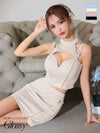 5. SALE [ROBEdeFLEURSGlossy/ローブドフルールグロッシー] 高級 ホルターネック ベルトデザイン バストカット セットアップ 谷間魅せ タイトミニドレス