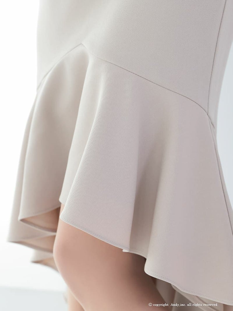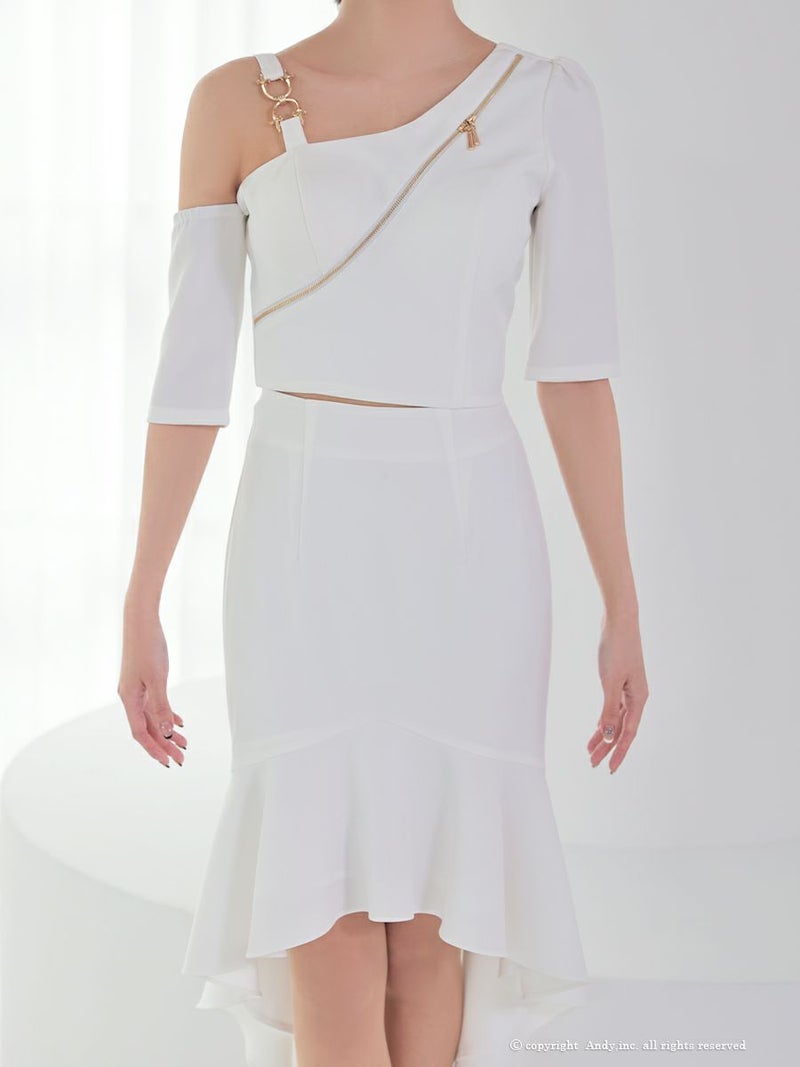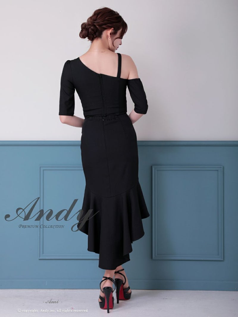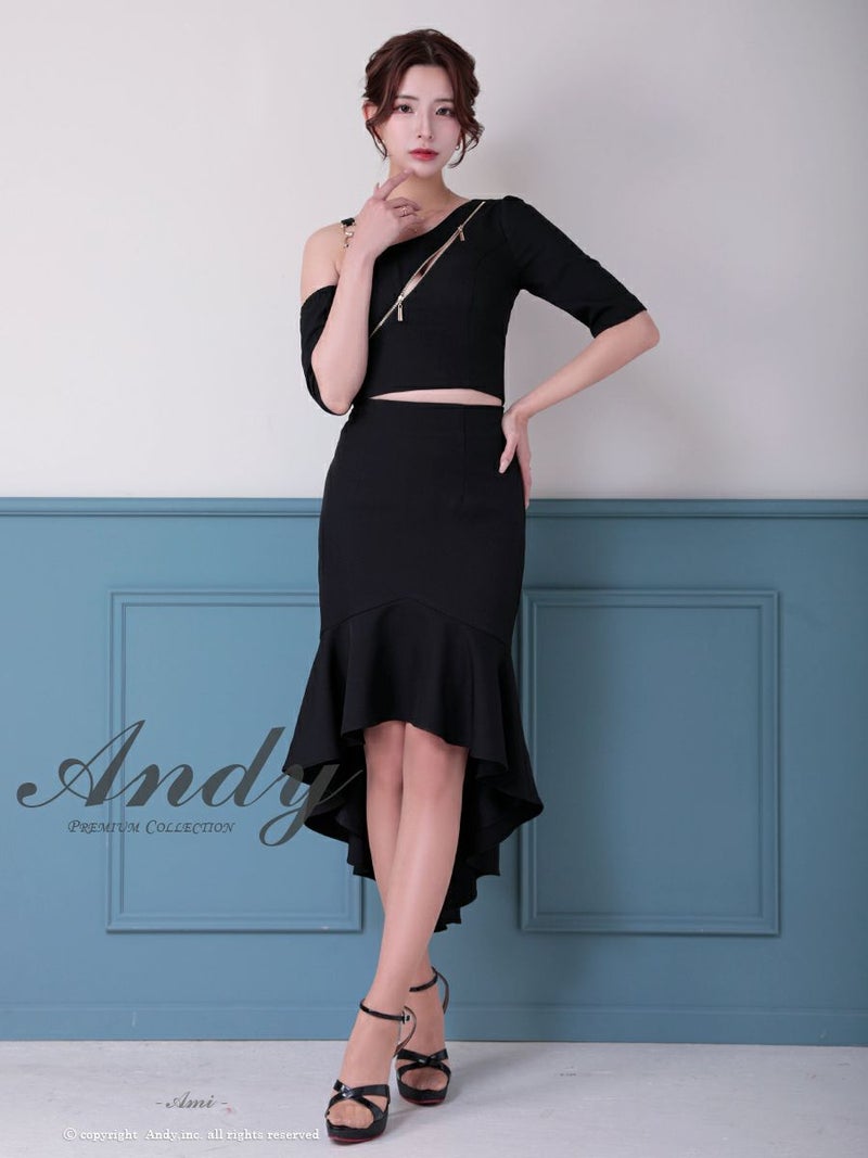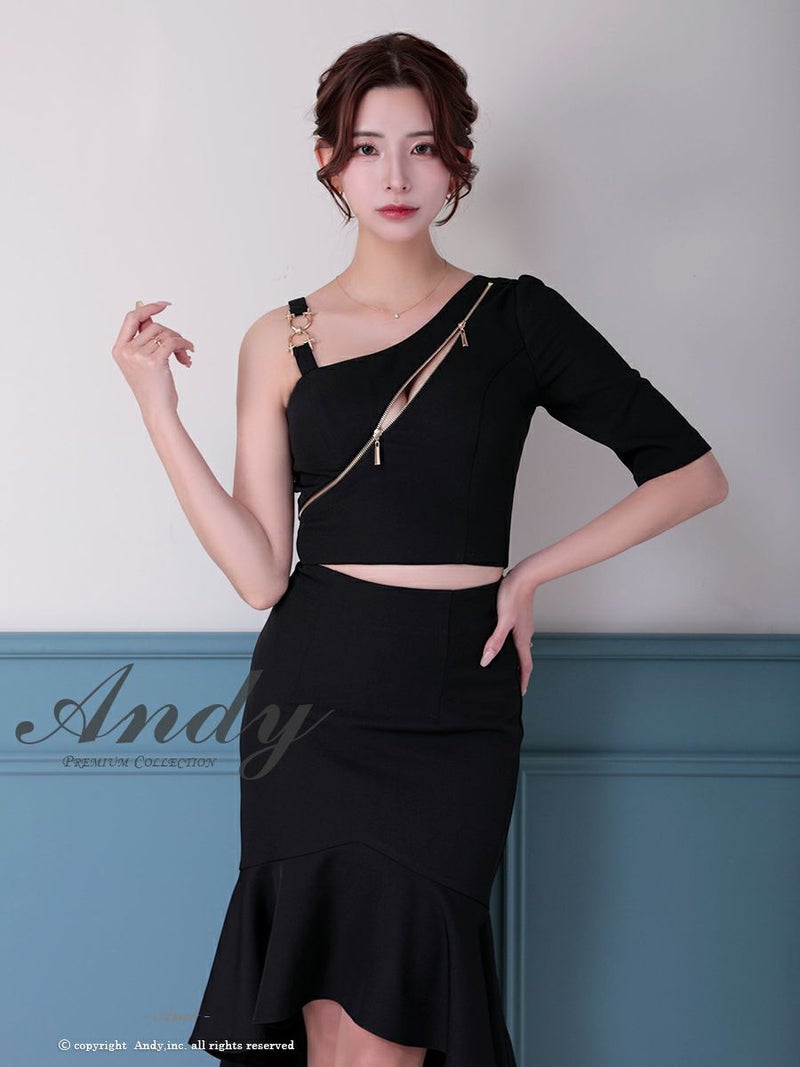 キャバドレス Andy アンディ ワンショルダー ロングテール ジップデザイン ワンカラー マーメイド セットアップ タイトミディ キャバドレス