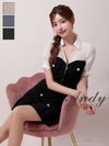 3. [Andy/アンディ] 高級 ワンピース Aライン ミニドレス 谷間 セットアップ シンプル 上品 半袖 襟付き ジップ 同伴