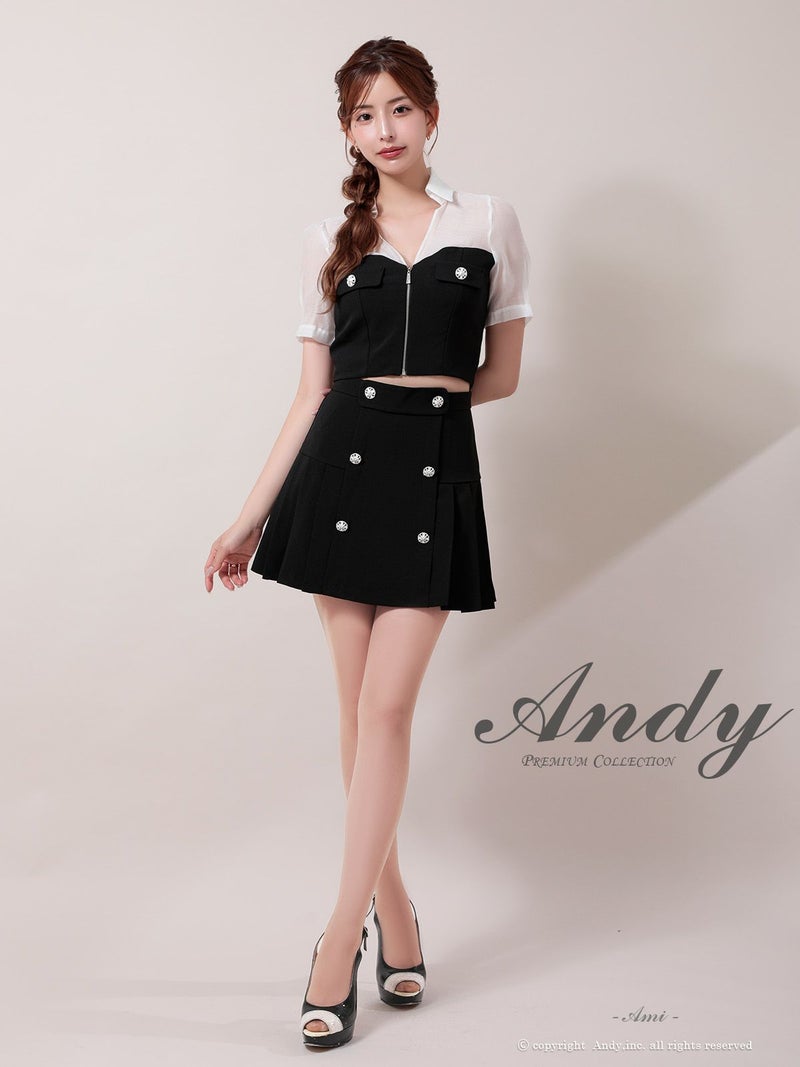 キャバドレス Andy ワンピース 高級 Aライン ミニドレス 谷間 セットアップ シンプル 上品 半袖 襟付き ジップ 同伴