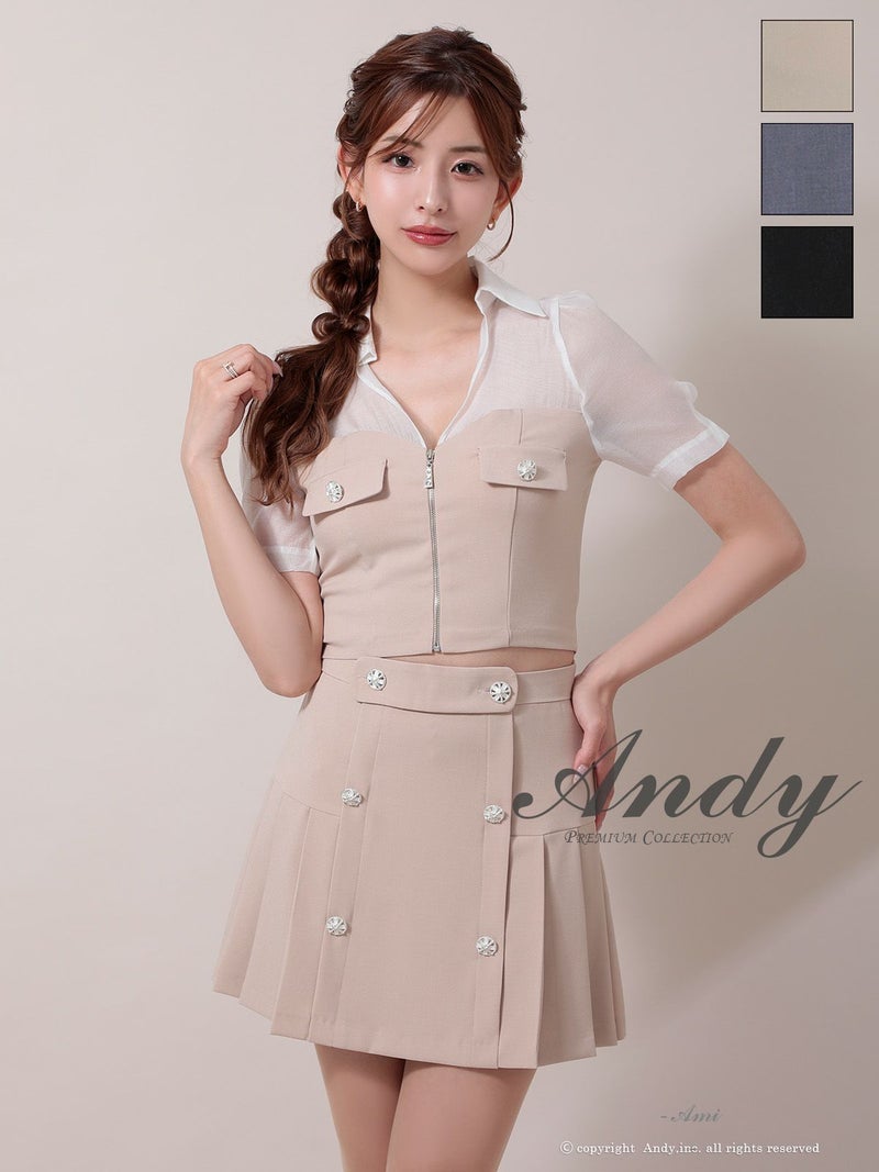 キャバドレス Andy ワンピース 高級 Aライン ミニドレス 谷間 セットアップ シンプル 上品 半袖 襟付き ジップ 同伴