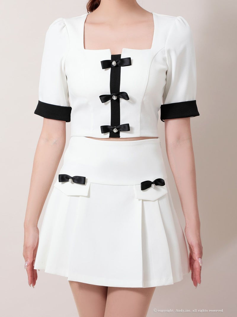 スクエアネックで顔周りスッキリ☆ [Andy/アンディ] 高級 ワンピース Aライン ミニドレス セットアップ シンプル 上品 半袖 同伴