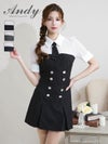 おしゃれなスタイリッシュデザイン♡ [Andy/アンディ] 高級 ワンピース Aラインミニドレス セットアップ 半袖 襟付き ストライプ