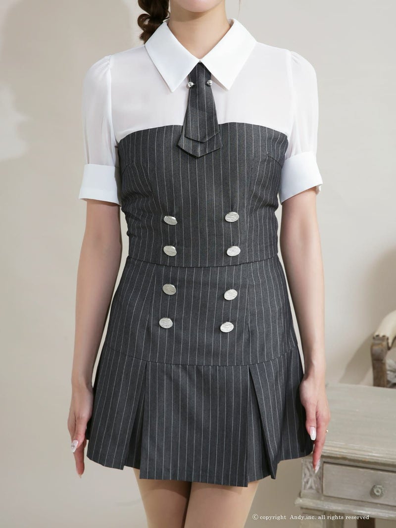 3. [Andy/アンディ] 高級 ワンピース Aラインミニドレス セットアップ 半袖 襟付き ストライプ