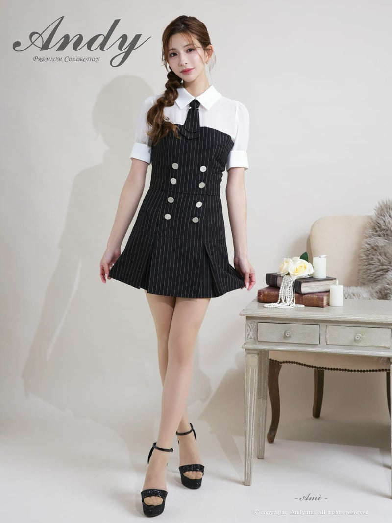 キャバドレス Andy アンディ ワンピース 高級  Aライン ミニドレス セットアップ 半袖 襟付き ストライプ