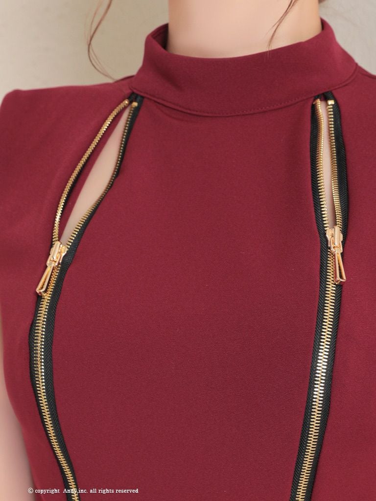 キャバドレス Andy アンディ 高級ノースリーブジップデザインハイネックセットアップフレアミニドレス