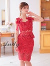 露出控えめでキュートなデザイン☆ [Andy/アンディ] 高級花柄セットアップノースリーブリボンビジューくびれタイトミニドレス