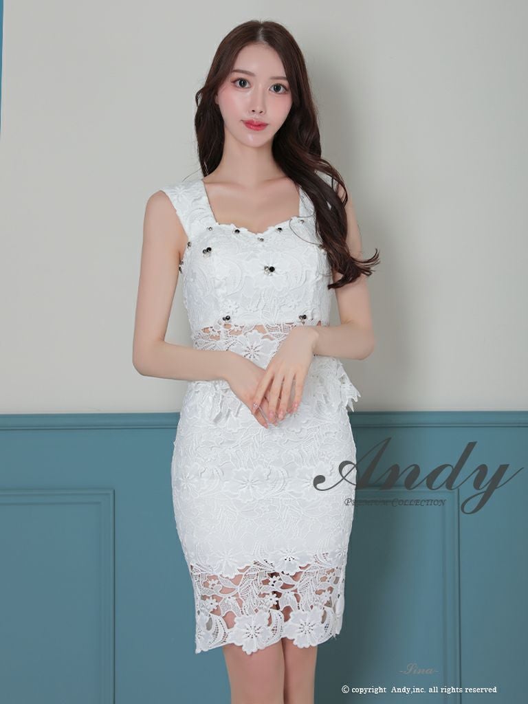5. [Andy/アンディ] 高級花柄セットアップノースリーブリボンビジューくびれタイトミニドレス