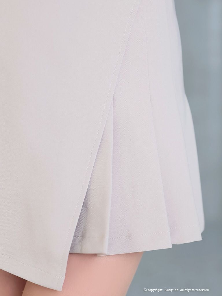 4. [Andy/アンディ] 高級 半袖 パフスリーブ セットアップ ウエストカット ワンカラー プリーツ ジップ バストカット 谷間魅せ フレアミニドレス