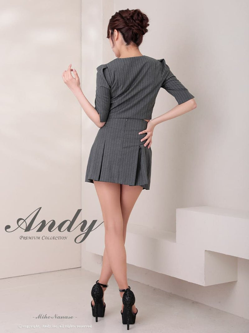 キャバドレス Andy アンディ 高級 袖あり 五分袖 ストライプ スクエアネック ジップ セットアップ プリーツ フレア ミニドレス
