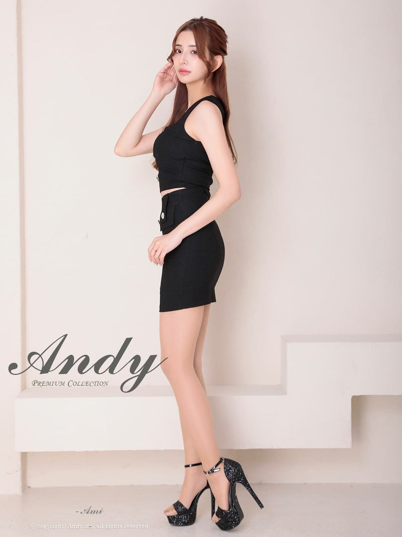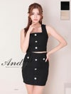 キャバドレス Andy アンディ 高級 ノースリーブ スクエアネック パールボタン ポケット ワンカラー セットアップ タイトミニドレス