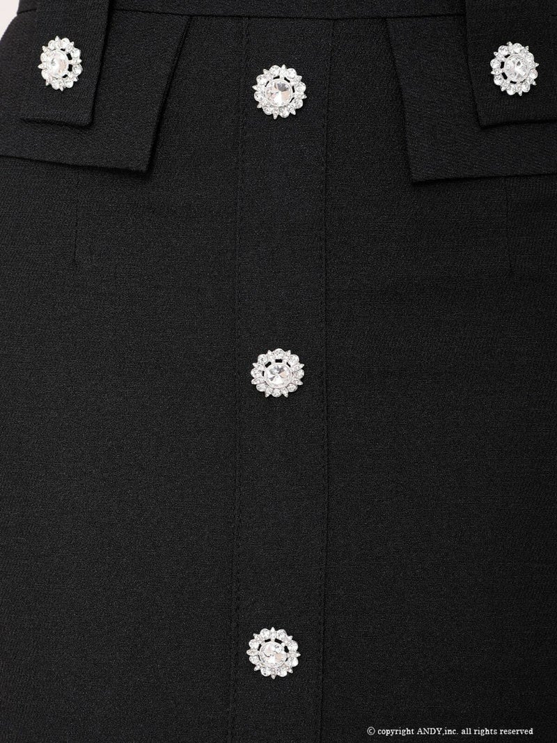 ワンカラーのセットアップ☆ [Andy/アンディ] 高級 ノースリーブ スクエアネック パールボタン ポケット ワンカラー セットアップ タイトミニドレス