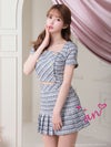 フレアスカートであざと可愛いセットアップミニドレス♪ [an/アン] 高級ゴールドボタンチェック柄フレアセットアップ半袖ミニ丈ドレス