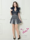 ショルダーリボンで華やかに魅せる☆ [an/アン] 高級チェック柄セットアップショルダーチュールリボンジッパープリーツノースリーブフレアミニドレス