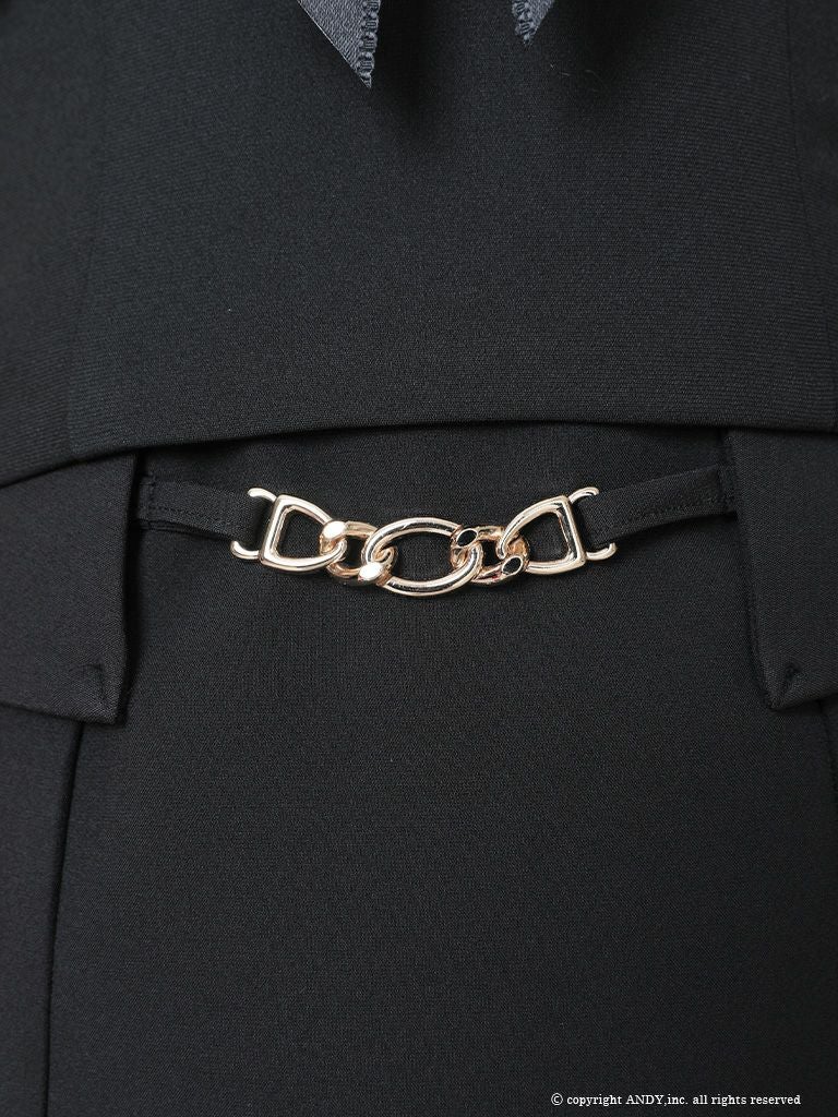 3. [an/アン] 高級肩出し 二の腕カバーセットアップリボンブローチフリルワンカラーフレアミニドレス