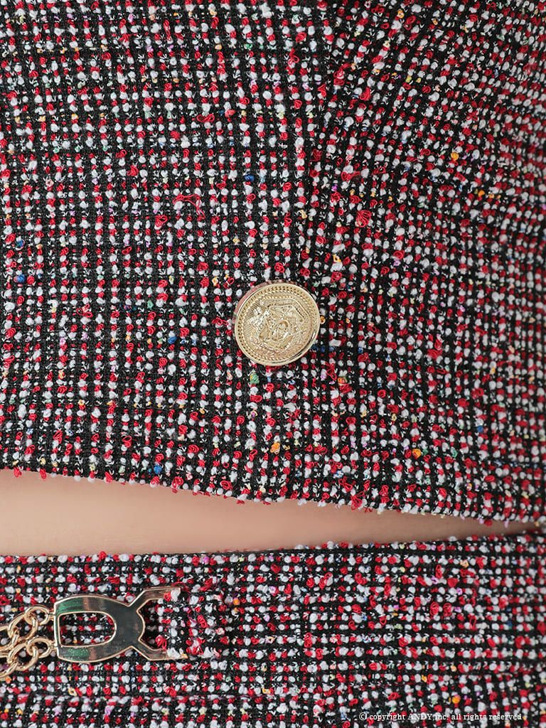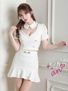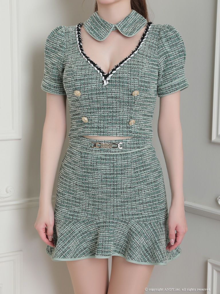 大きく開いたネックラインがセクシー☆ [an/アン] 高級 襟付き ツイード セットアップ 半袖 フレアミニドレス