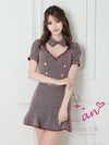 5. [an/アン] 高級 襟付き ツイード セットアップ 半袖 フレアミニドレス