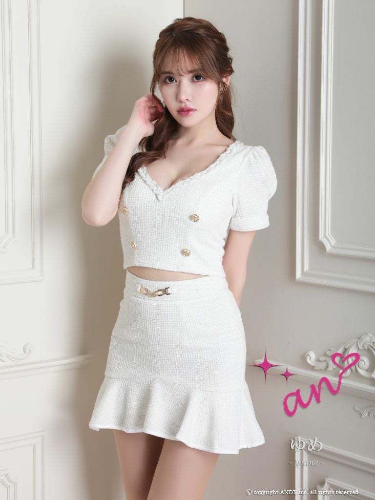 甘めなデザインながらも色気もしっかり☆ [an/アン] 高級 襟付き ツイード セットアップ 半袖 フレアミニドレス