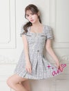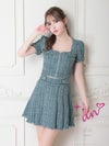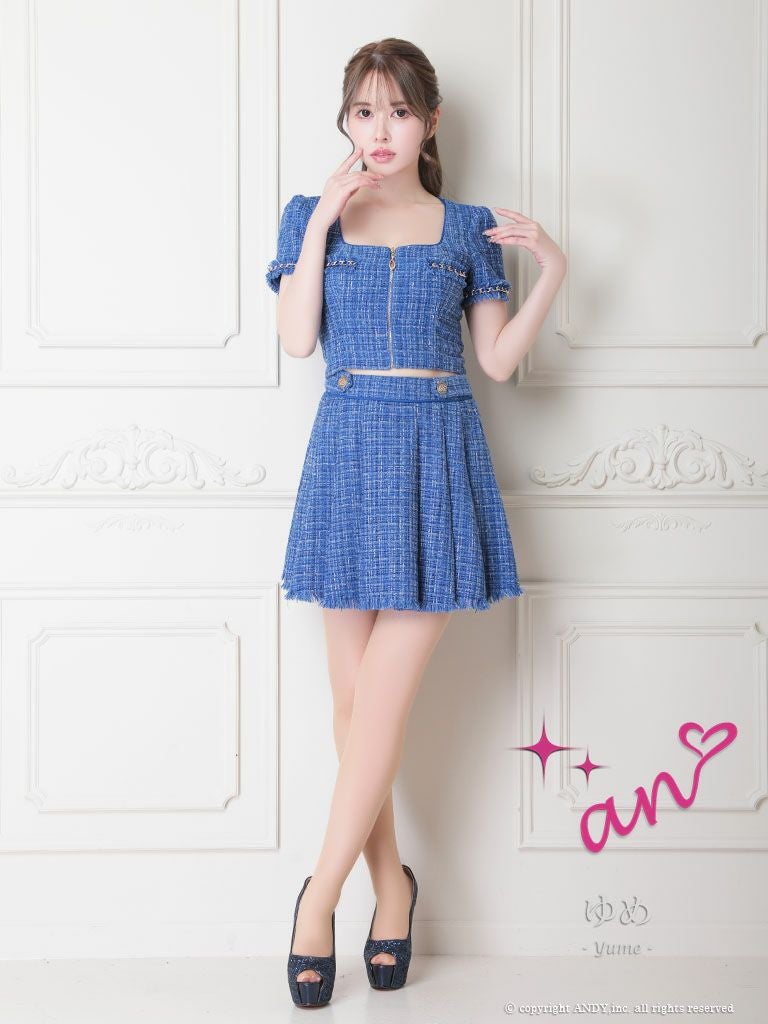 フロントジッパーで大人セクシー☆ [an/アン] 高級半袖 ツイード セットアップ ジップ フレアミニドレス