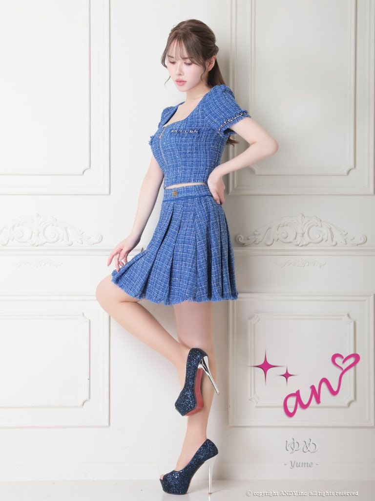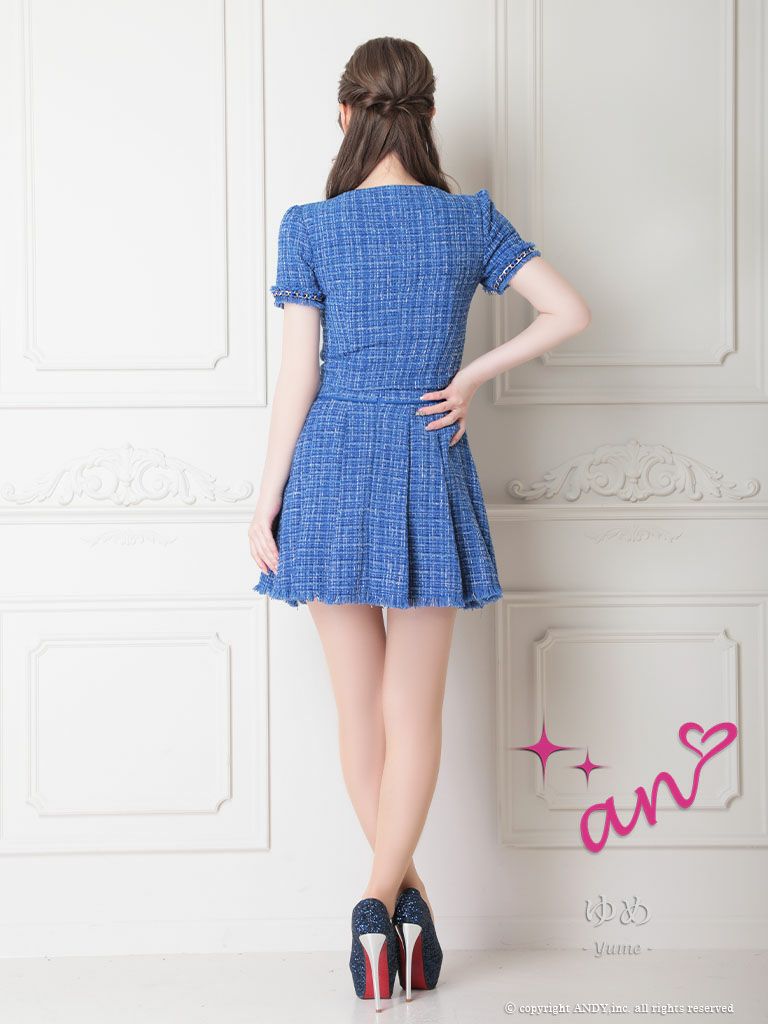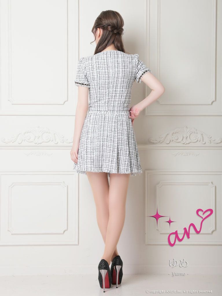 4. [an/アン] 高級半袖 ツイード セットアップ ジップ フレアミニドレス