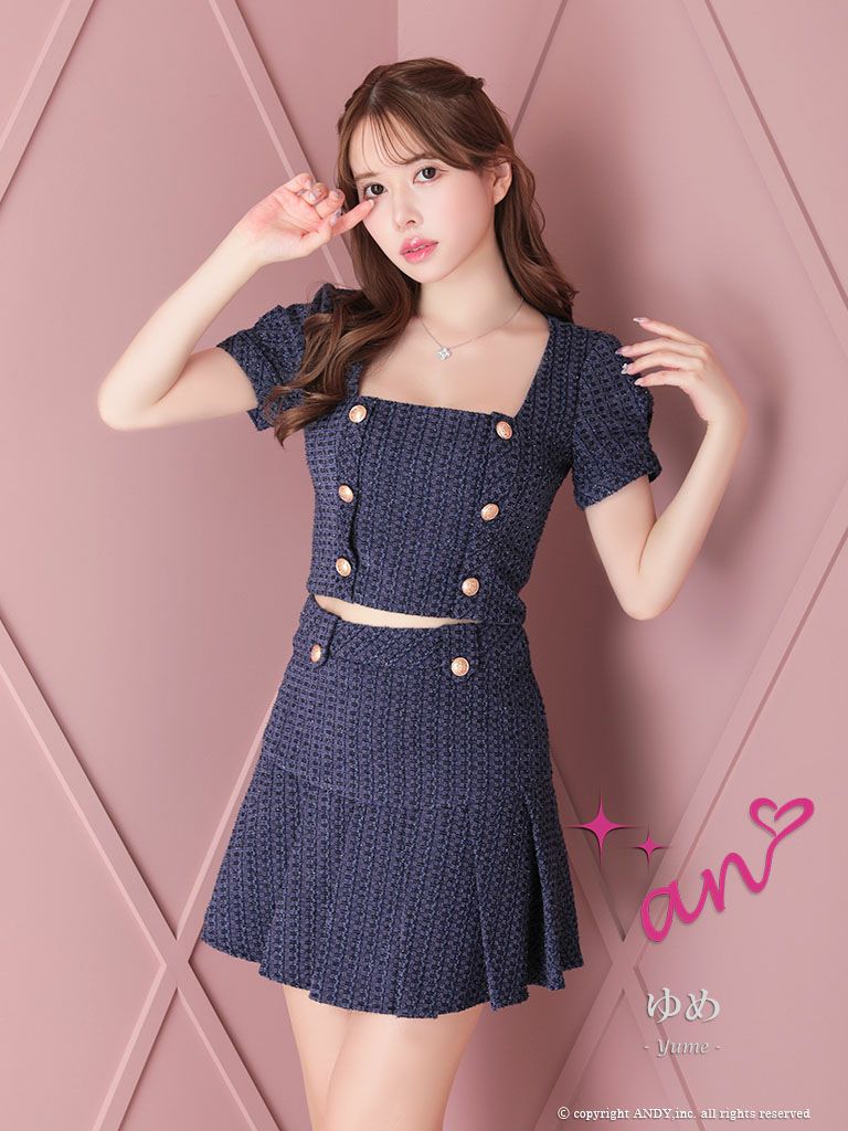 4. [an/アン] 高級ツイードボタンデザインセットアップ半袖フレアミニドレス