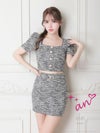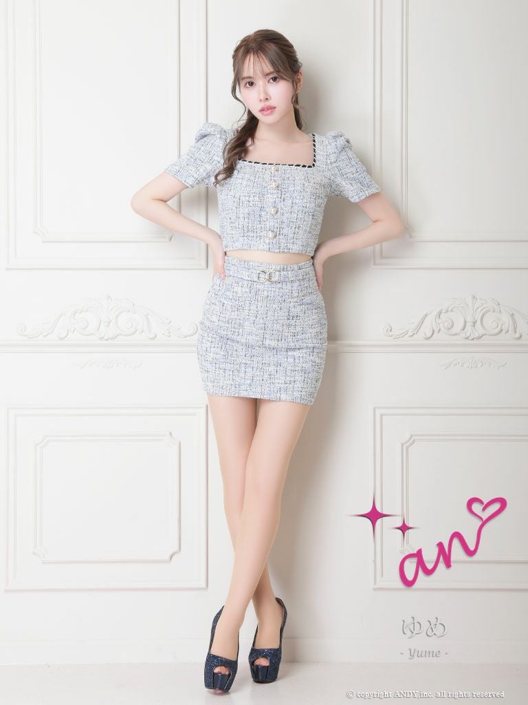 キャバドレス Andy アンディ 高級セットアップウエストベルトツイード半袖タイトミニドレス