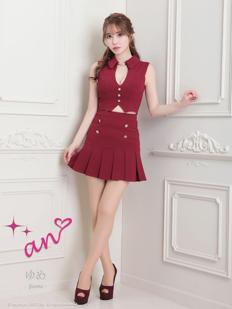 キャバドレス Andy アンディ 高級ワンカラー襟デザインセットアップノースリーブフレアミニドレス