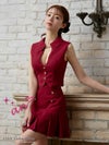 大胆なバストカットがセクシー☆ [an/アン] 高級 ワンカラー 襟付き セットアップ ノースリーブ フレアミニドレス