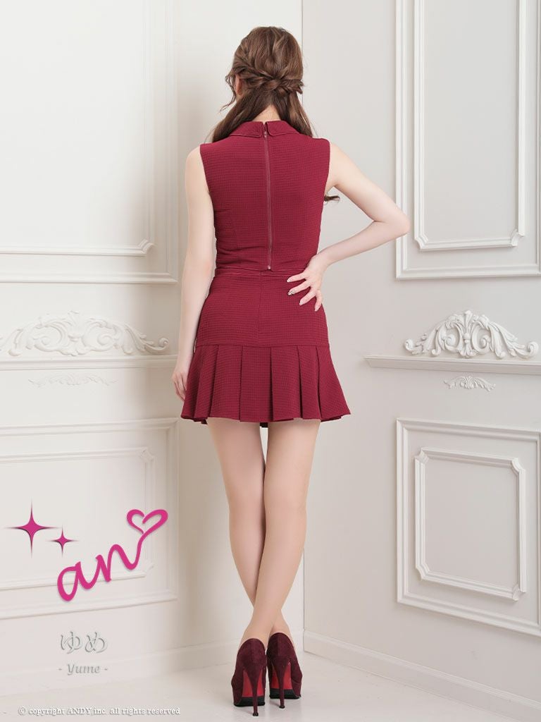 キャバドレス Andy アンディ 高級ワンカラー襟デザインセットアップノースリーブフレアミニドレス