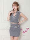 キャバドレス ミニドレス an/アン 高級ノースリーブ襟デザインチェック柄セットアップポケットデザインゴールドボタンタイトミニドレス