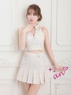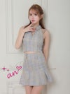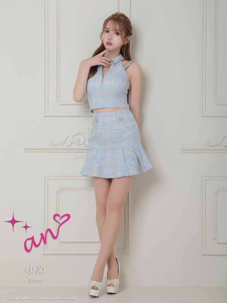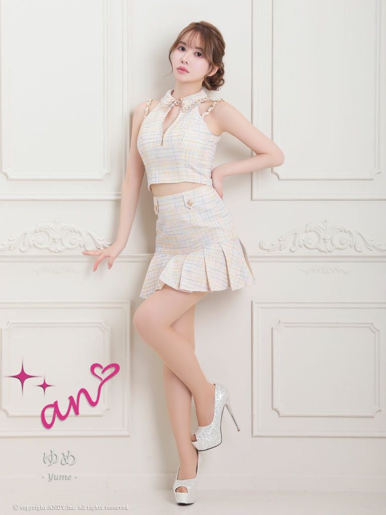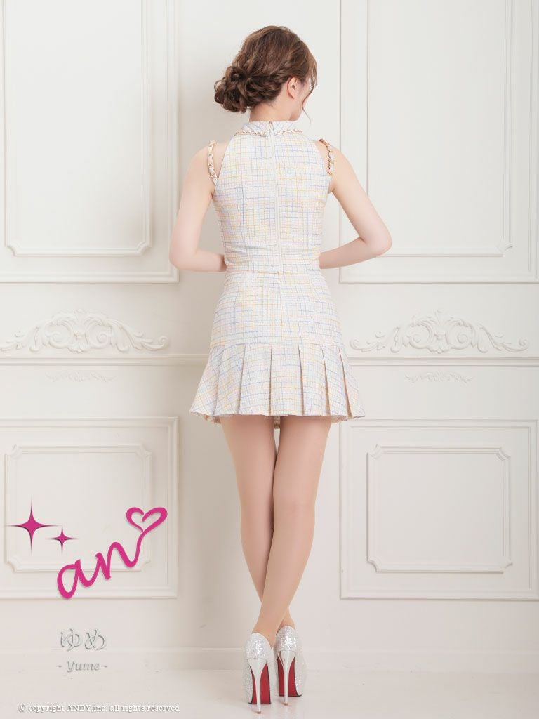 ガーリーな一枚☆ [an/アン] 高級 フロントジップ ホルターネック 襟付き チェック柄 セットアップ フレアミニドレス