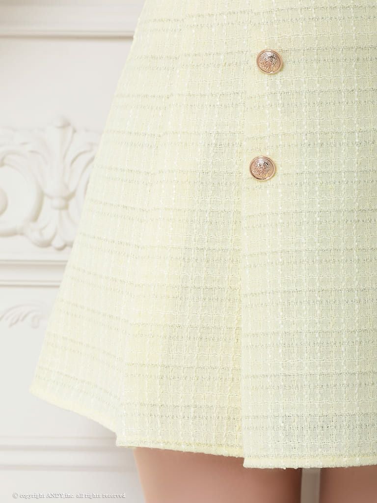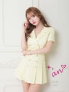 キャバドレス ミニドレス an アン 高級ツイード襟デザイン半袖セットアッププリーツフレアミニドレス