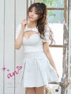 4. [an/アン] 高級 半袖 2way キャミソール セットアップ リボン バストカット パールボタン ツイード 谷間魅せ フレアミニドレス