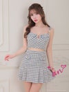 キャバドレス ブランド an アン 高級キャミソールパール肩紐セットアップハーフフロントジップツイードプリーツフレアミニドレス
