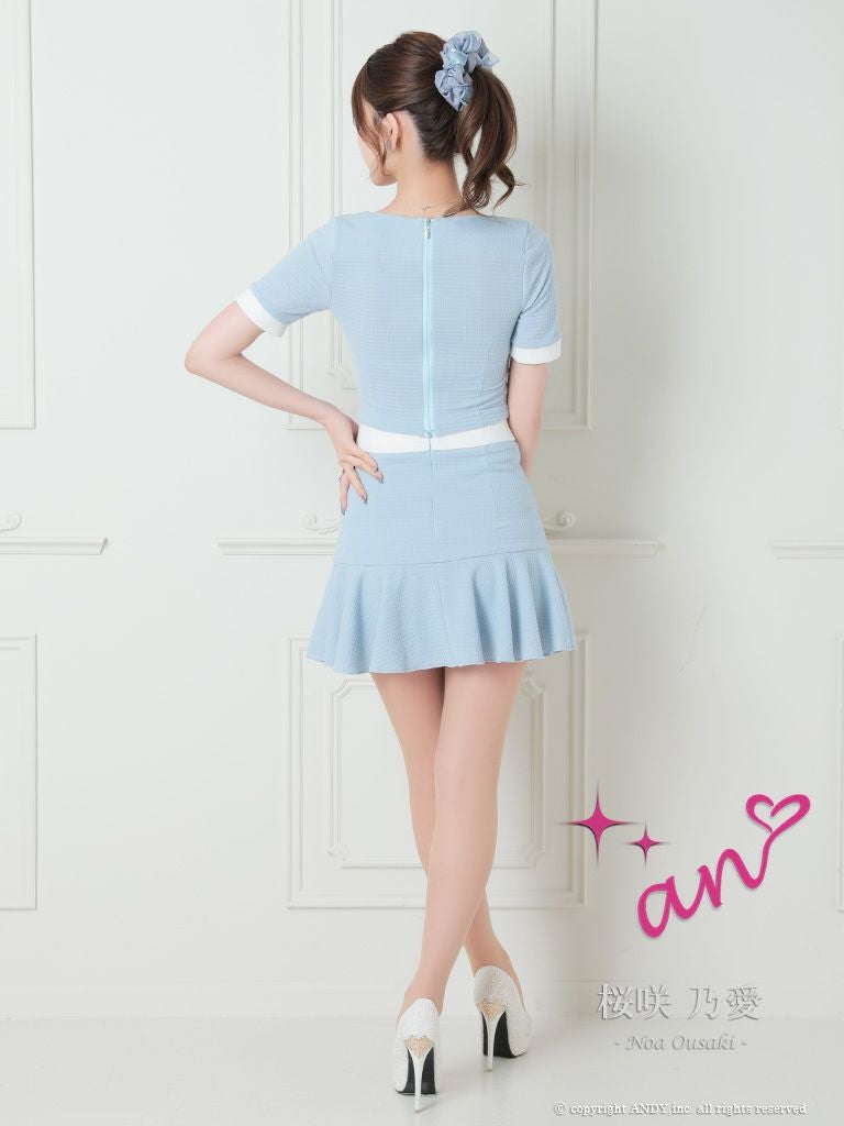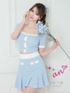 キャバドレス an アン 高級半袖セットアップゴールドボタンスクエアネックバイカラーフレアミニドレス