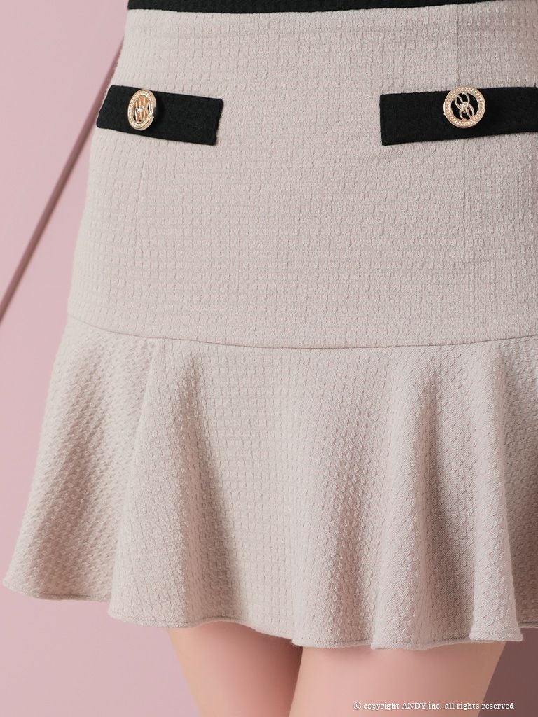 4. [an/アン] 高級半袖セットアップゴールドボタンスクエアネックバイカラーフレアミニドレス
