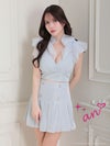 ショート丈とミニスカートでスタイルUP効果抜群☆ [an/アン] 高級ノースリーブセットアップショルダーリボンラメストーンプリーツフレアミニドレス