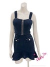 3. [an/アン] 高級ノースリーブ セットアップ ツイード ジップ フリル ボタン タイトミニドレス