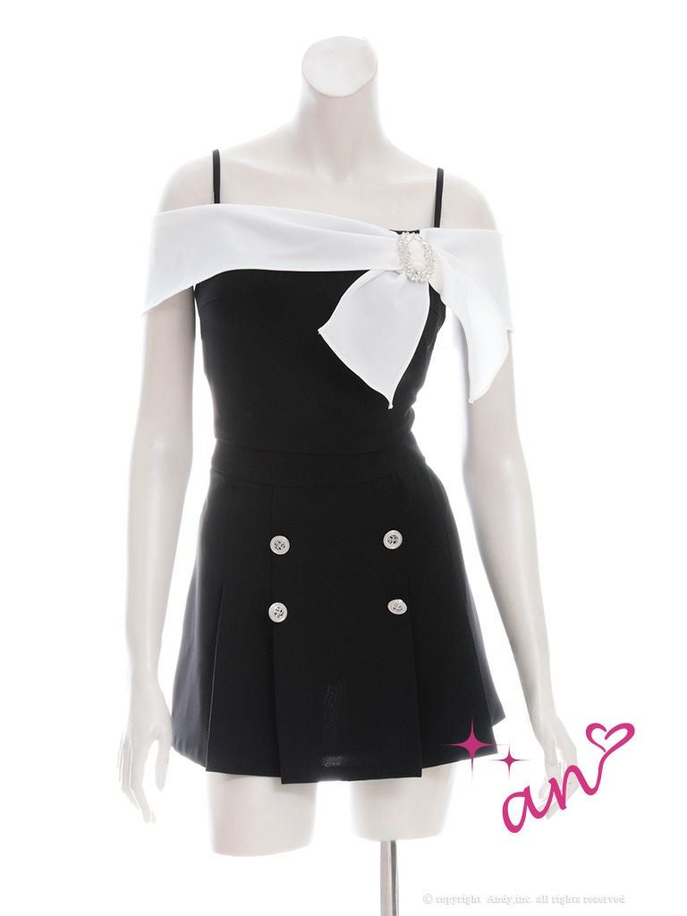 5. [an/アン] 高級肩出し 二の腕カバーセットアップストーンリボンボタンフレアミニドレス