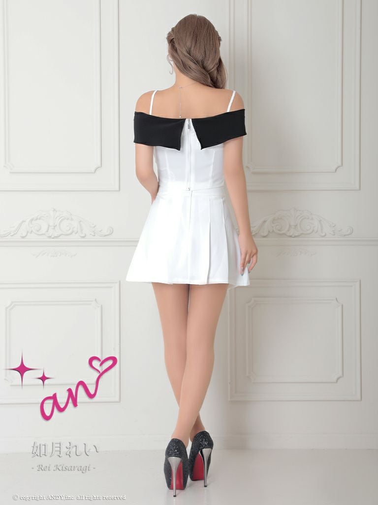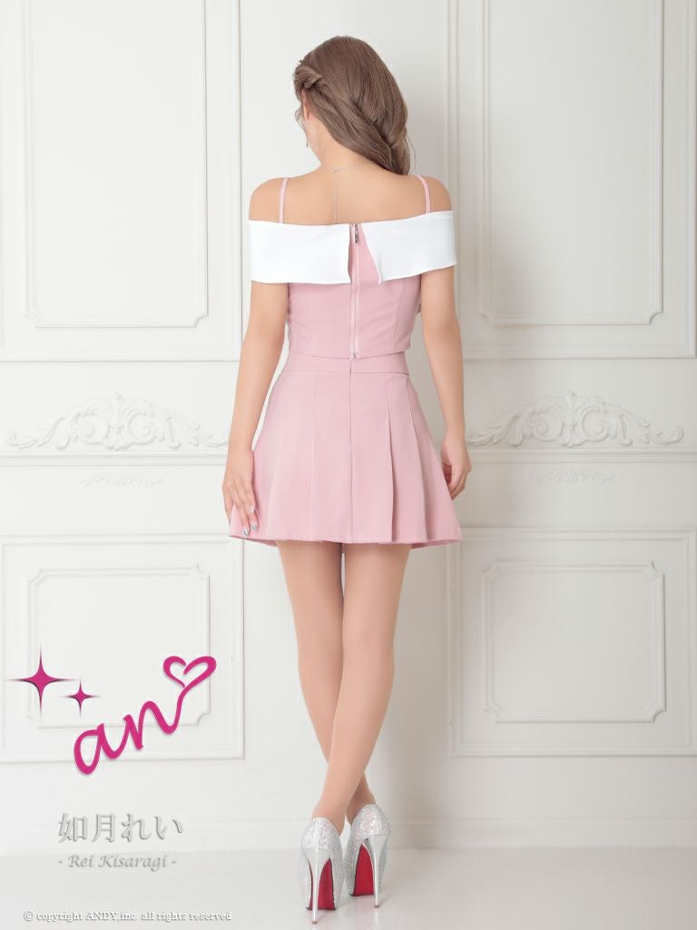 キャバドレス an アン 高級肩あきセットアップストーンリボンボタンフレアミニドレス