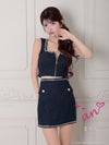 3. [an/アン] 高級ノースリーブ セットアップ ラメツイード ジップ ポケット ビジュー スクエアネック タイトミニドレス