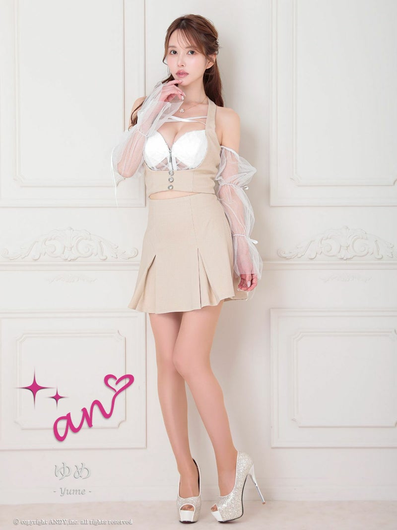 キャバドレス an アン 高級ホルターネック袖取り外しセットアップシアージップデザインプリーツフレアミニドレス