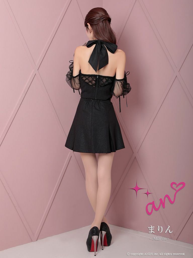 いろんな着こなしを楽しめる♡ [an/アン] 高級ホルターネック 袖取り外し シアー セットアップ ジップデザイン プリーツ フレアミニドレス