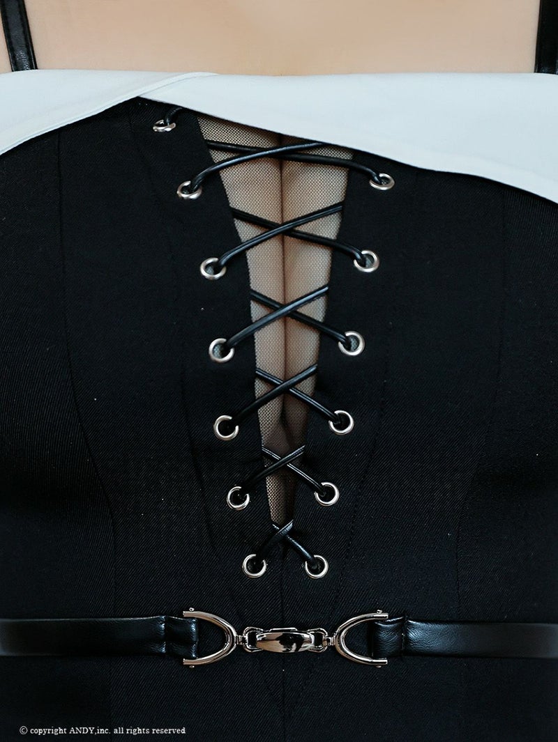 3. [an/アン] 高級肩出し 二の腕カバーセットアップ袖あり編み上げウエストベルトシアータイトミニドレス