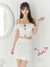 ガーリーな印象のセットアップドレス☆ [an/アン] 高級 肩出し 二の腕カバー バストカット フリルチュール リボン プリーツ セットアップ 谷間魅せ フレアミニドレス